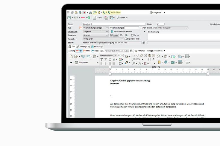 Zudem stellt die neue Textverarbeitung einen echten Gewinn dar, denn bei der Vielzahl von Formatierungs-, Einfügungs- und Verknüpfungsmöglichkeiten erleichtert sie das Arbeiten. Außerdem bietet die neue Version Bp Event 12 die höchste Datensicherheit auf Enterprise-Niveau.